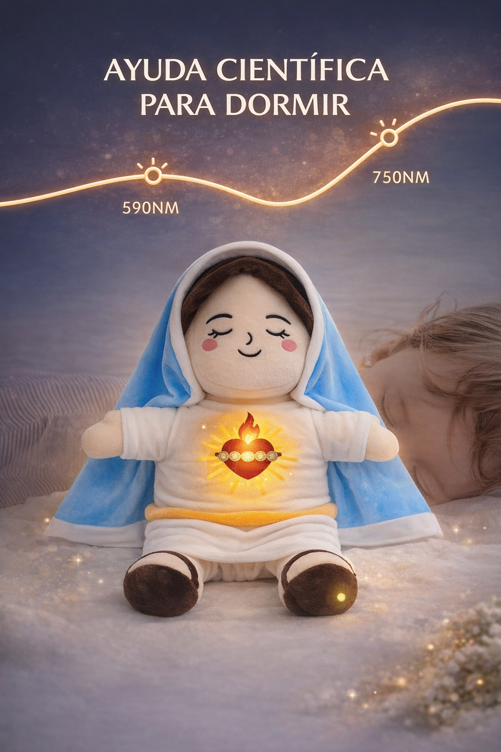 SleepCalm es un muñeco reconfortante pensado para acompañar momentos reales del día a día: antes de dormir, durante la oración o en instantes de ansiedad y necesidad de calma. Su diseño transmite paz, ayuda a relajarse y crea un ambiente seguro que favorece el descanso y el recogimiento espiritual.